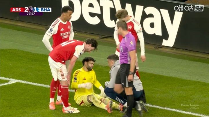12月28日讯 英超第18轮,阿森纳vs布莱顿,比赛第76分钟,明特精彩兜射直奔死角,拉亚极限起跳将球扑出底线。阿森纳仍2-1领先。